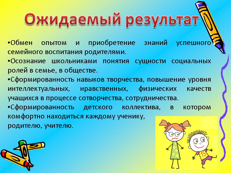 - Обмен опытом и приобретение знаний успешного семейного воспитания родителями.