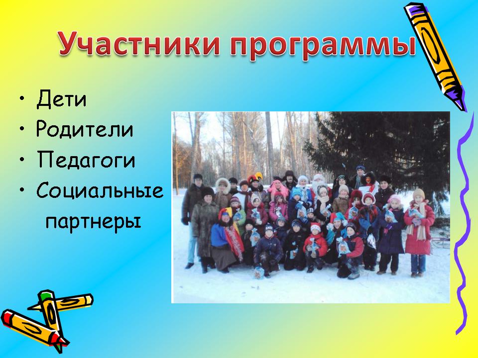 Цель программы: Создание условий для формирования и раскрытия творческой индивидуальности и коллективного сотрудничества младших школьников через социальное партнерство с семьёй.