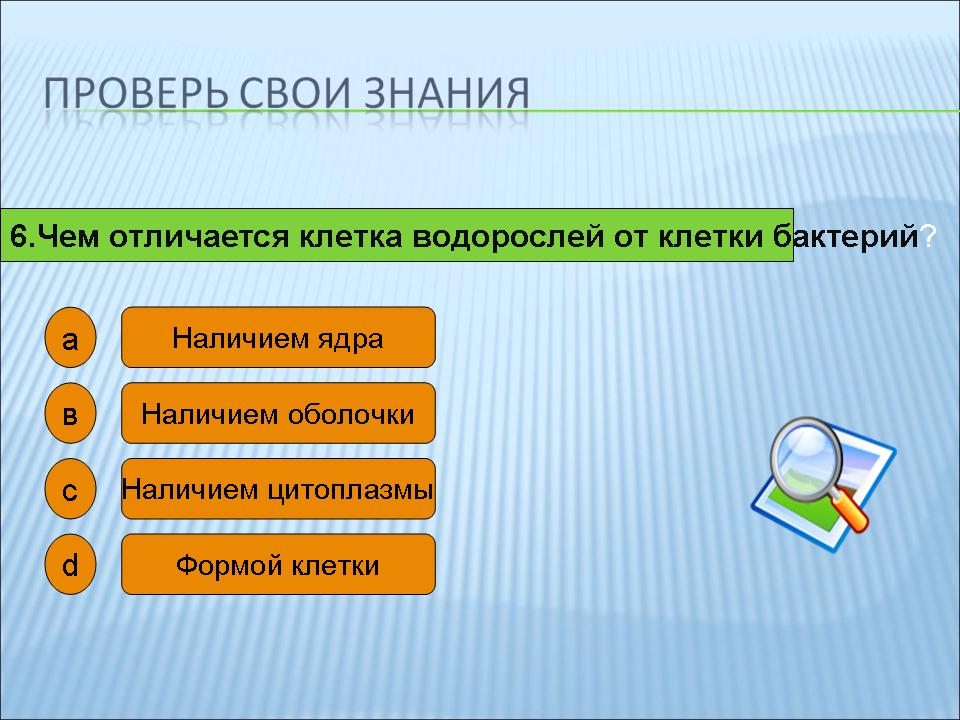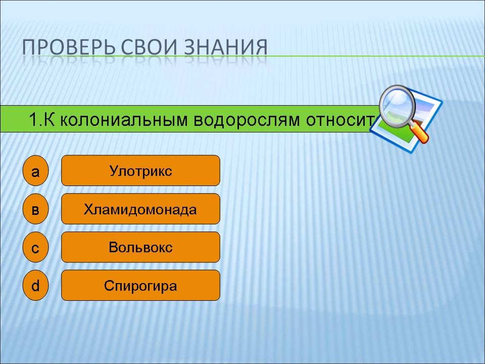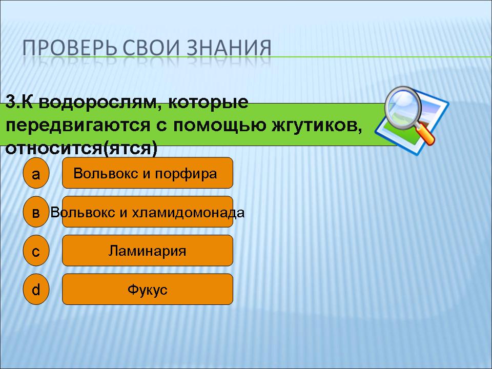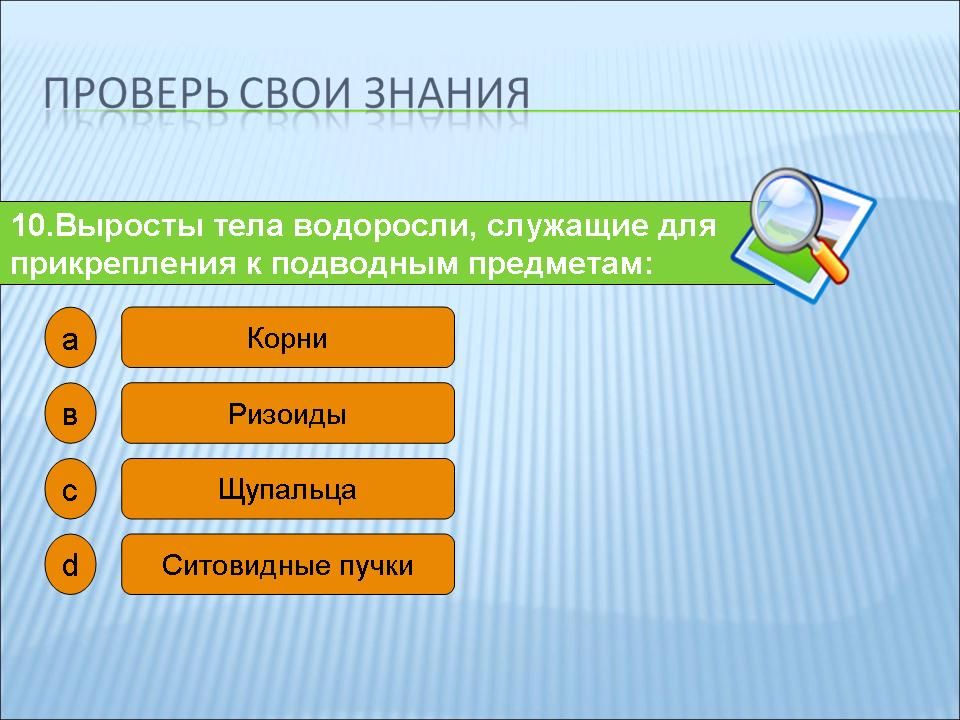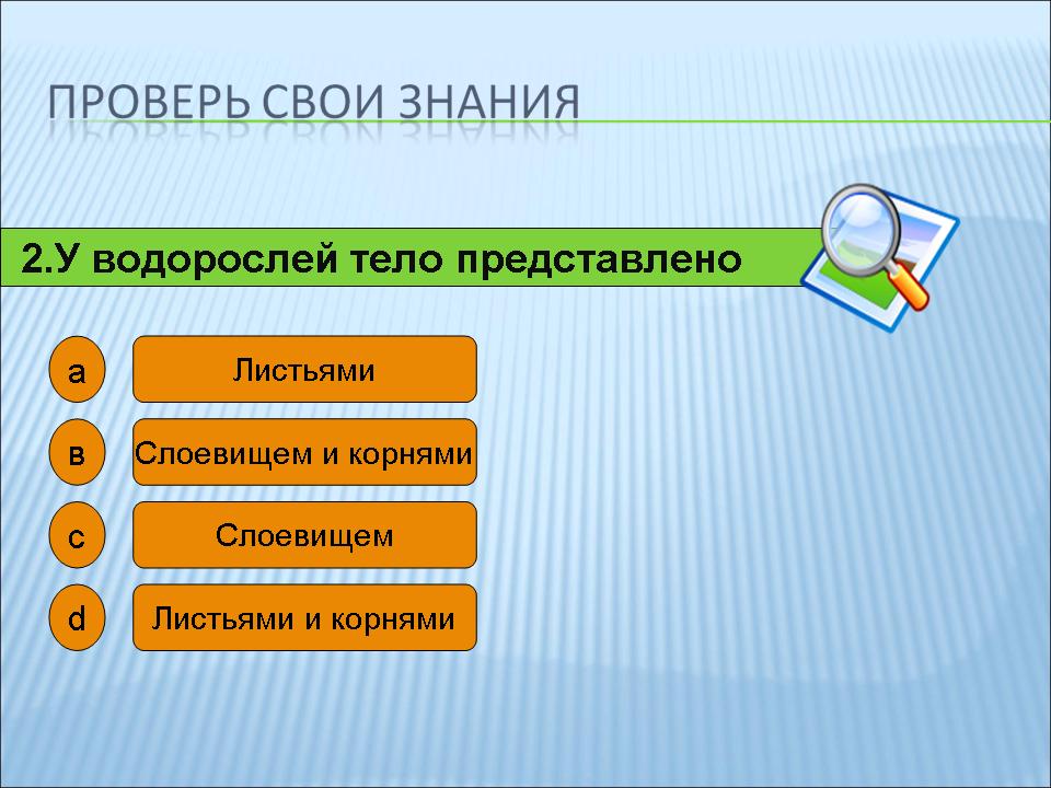 2. Актуализация прежних знаний (комбинированный опрос по теме “Водоросли”):