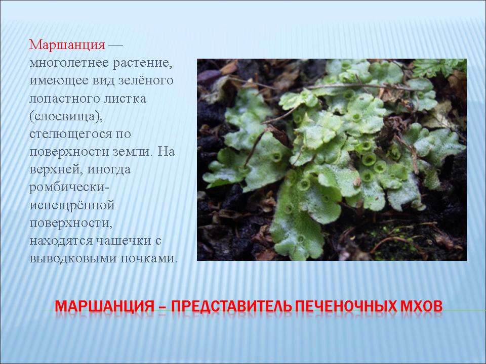 2 группа учащихся - дает характеристику Печеночным мхам. (Слайд 16-17)