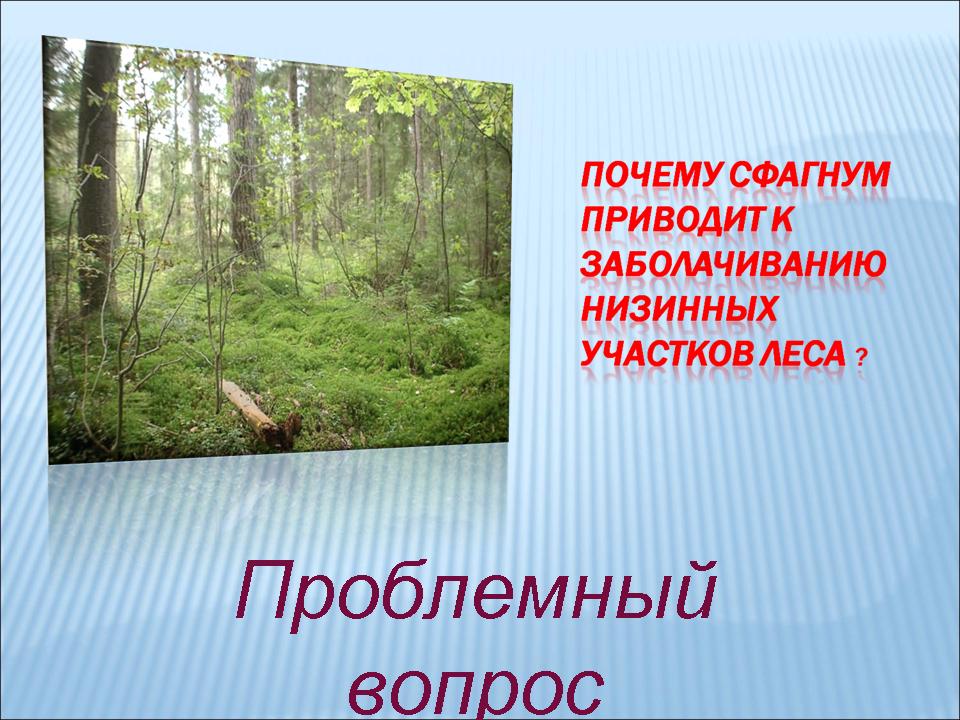 - Почему сфагнум приводит к заболачиванию низинных участков леса? (Слайд 25)