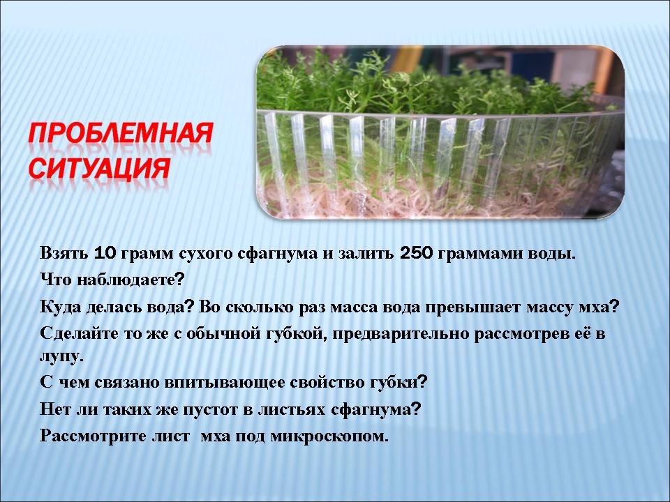 Г.Перед нами встает проблема, решив которую, мы узнаем важные сведения о сфагнуме.