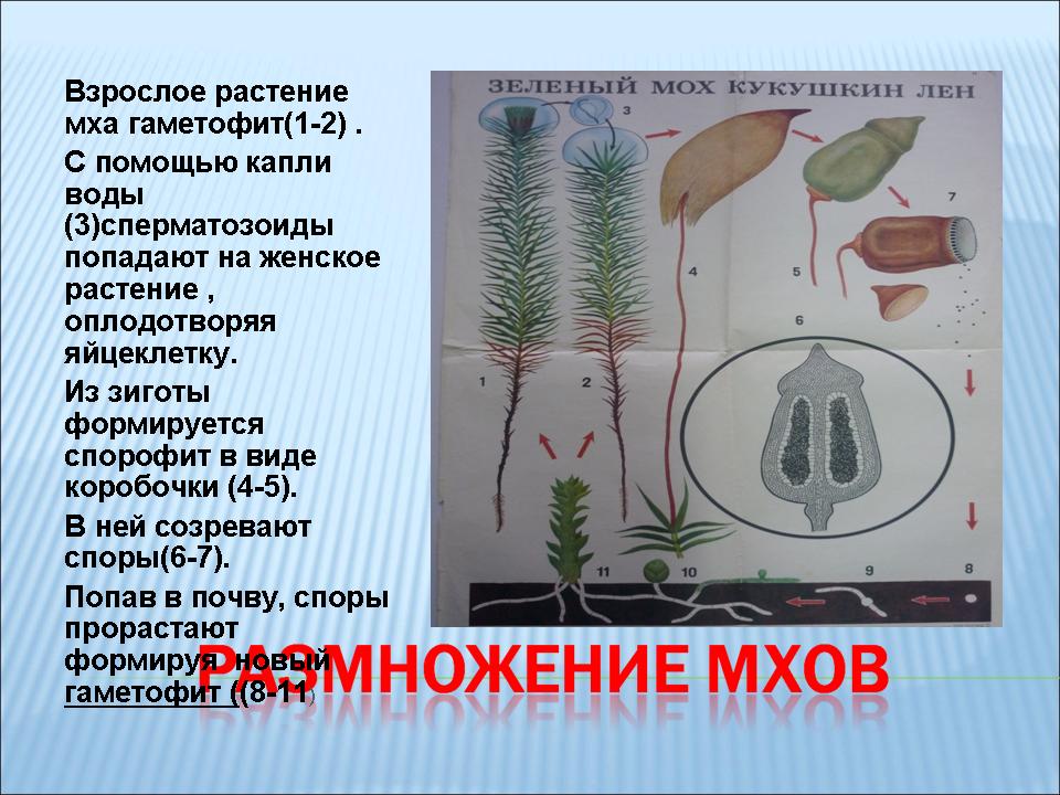 - Я предлагаю вам просмотреть ролик о размножении мхов. (Просмотр ролика)
