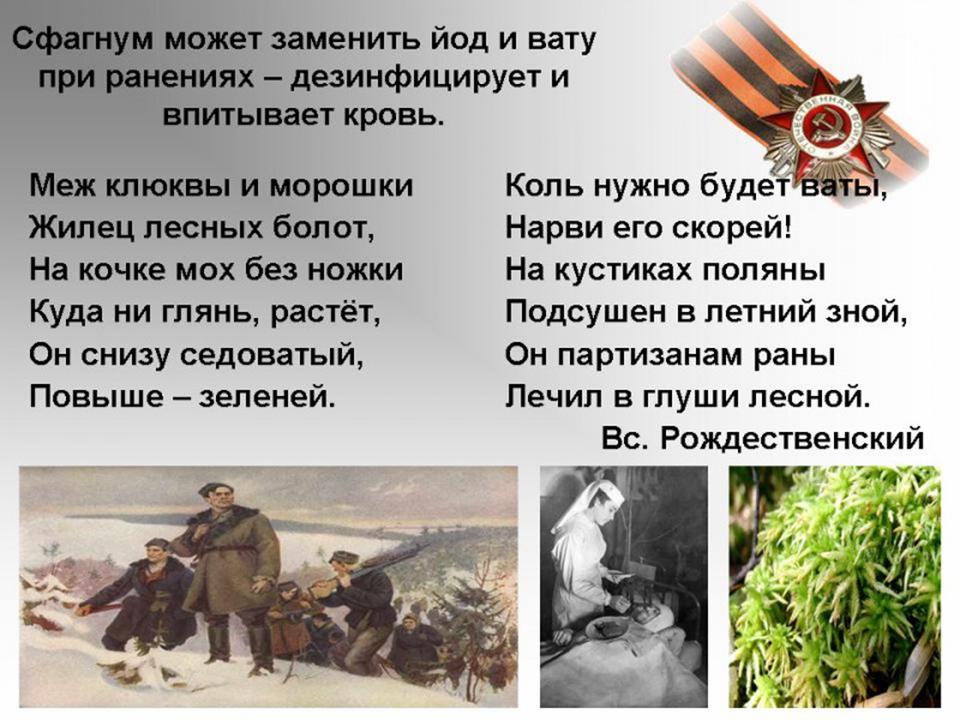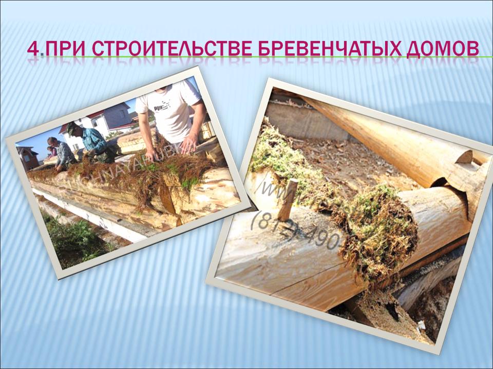 В Сибири и сейчас высушенный мох применяют при строительстве деревянных домов. (Слайд 37)