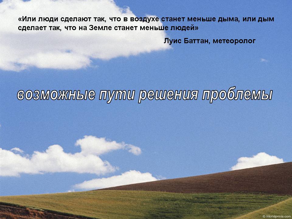 Понравилось ли нам состояние нашей атмосферы? Зная, что является причиной загрязнения, предложите возможные пути решения этой проблемы. (Слайд 15)