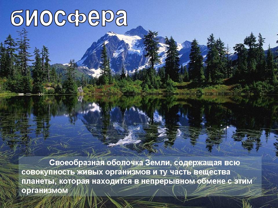 Вспомните из уроков биологии, что в современном представлении понимают под биосферой? (Своеобразная оболочка Земли, содержащая всю совокупность живых организмов и ту часть вещества планеты, которая находится в непрерывном обмене с этими организмами). (Слайд 4)