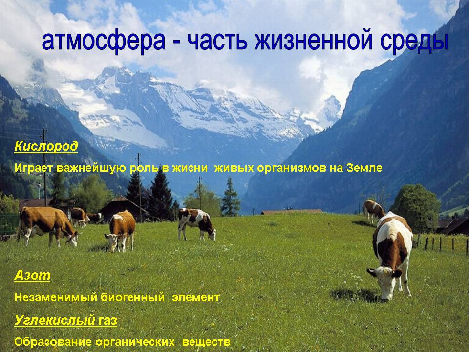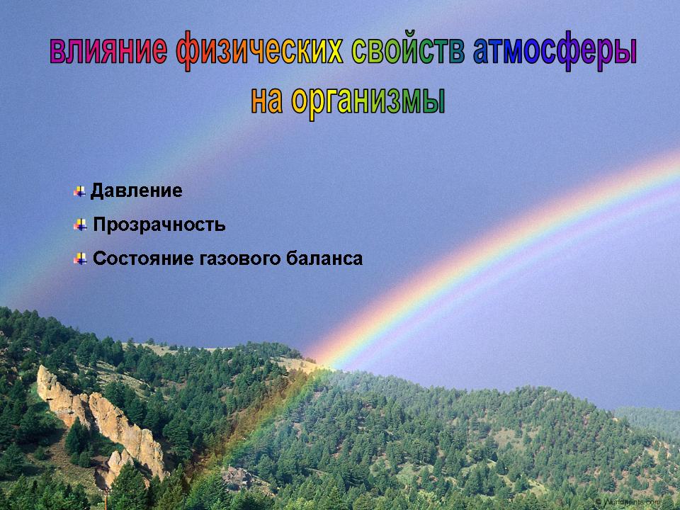 - значение состава атмосферы и влияние её физических свойств на живые организмы