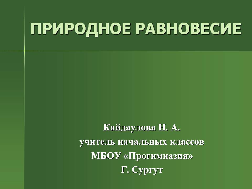 Учитель: Равенство между живой и неживой природой называют «природным равновесием».