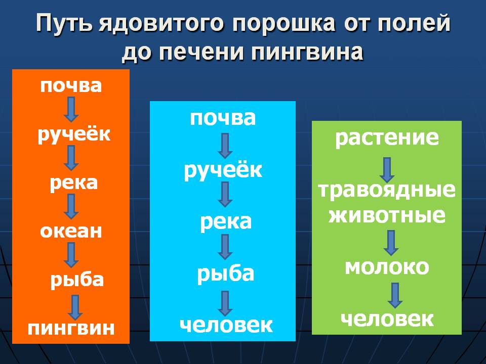Учитель: А какую еще можно составить экологическую цепочку? На кого еще оказал воздействие ядовитый порошок?