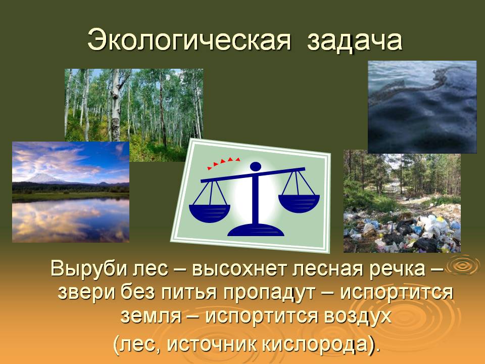 Ученики: Выруби лес – высохнет лесная речка – звери без питья пропадут – испортится земля – испортится воздух (лес, источник кислорода).