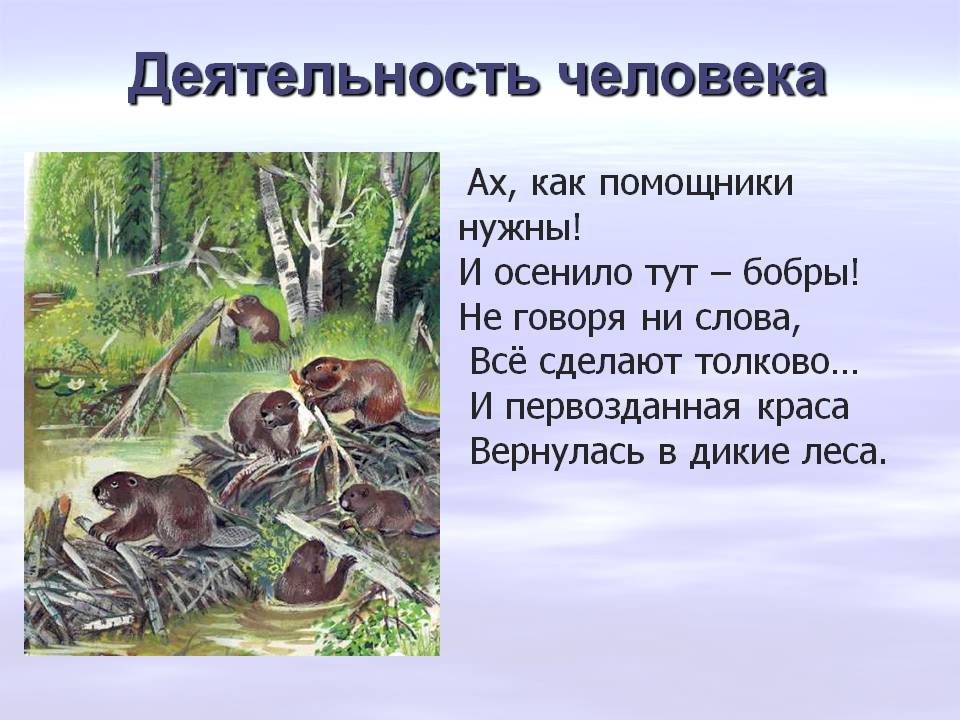 Учитель: Еще одним направлением науки экологии является изучение воздействие человека на природу (Сл. №10).