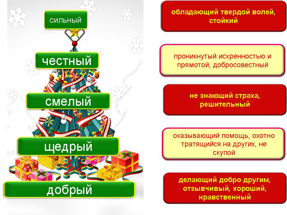 - Добрый – делающий добро другим, отзывчивый, хороший, нравственный.