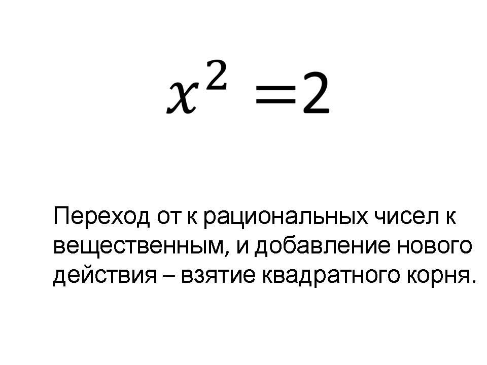 возникает необходимость нового математического действия, которое по квадрату числа определяло бы его основание. Это действие мы назвали извлечением квадратного корня, которое не всегда возможно в рамках рациональных чисел, но всегда возможно в рамках действительных чисел.