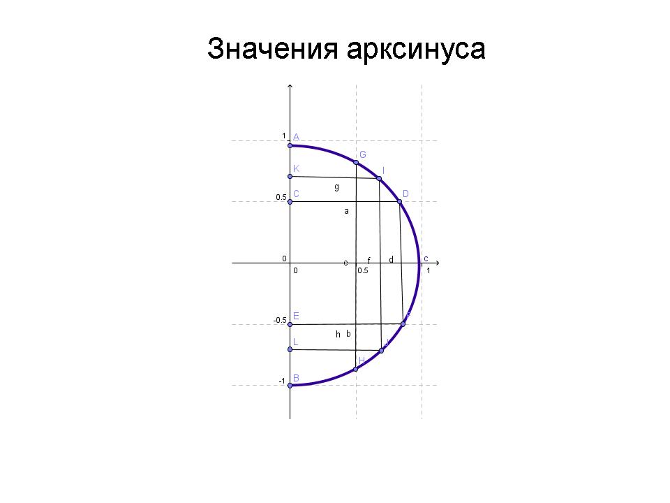 В геогебре строю полуокружность арксинусов, отрабатываем табличные значения.