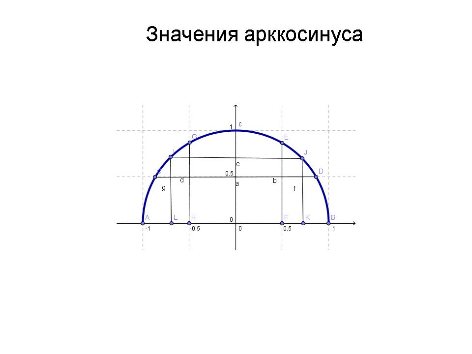 На тригонометре (в геогебре) берем полуокружность арккосинусов, отрабатываем табличные значения.