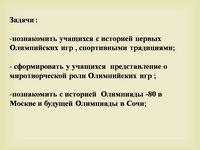 - познакомить учащихся с историей возникновения Олимпийских игр и традициями;