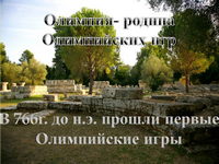 4-5 слайд. Первые Олимпийские игры прошли в 766 г. До н.э. в небольшом городке Олимпия, расположенном в Южной Греции.