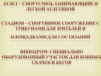 9 слайд. Словарная работа. Знакомство со значением слов атлет, стадион, ипподром.
