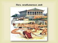 Выступление учеников (опережающее задание) о том, как проходили соревнования по бегу, прыжкам в длину, метанию копья и диска, борьбе.