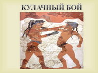 15 - 16 слайд. Захватывающим зрелищем были кулачный бой и гонки колесниц.
