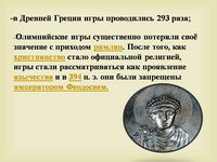 18 слайд. Рассказ учителя о том , почему перестали существовать Олимпийские игры.