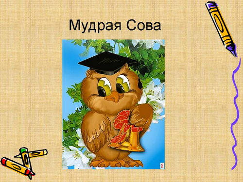- Ребята, сегодня у нас на уроке очень интересный гость "Мудрая сова". Слайд 2.