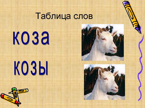 - Ребята мы записали два слова: коза и письмо. Сначала рассмотрим слово коза.