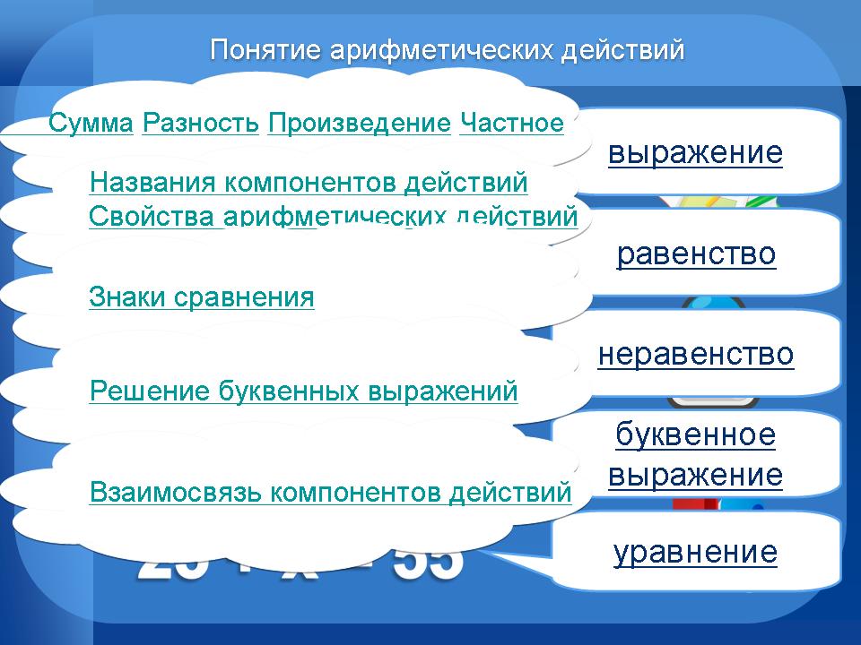Цель: закрепить знание основных понятий арифметических действий.