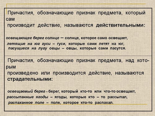 2). Дайте определение действительных и страдательных причастий, в чём их отличие?