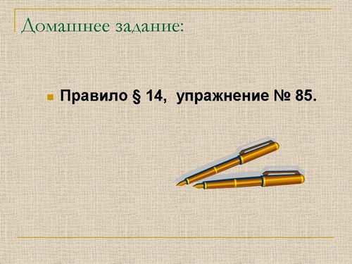 Слайд №13. Правило параграф 14, упражнение № 85.