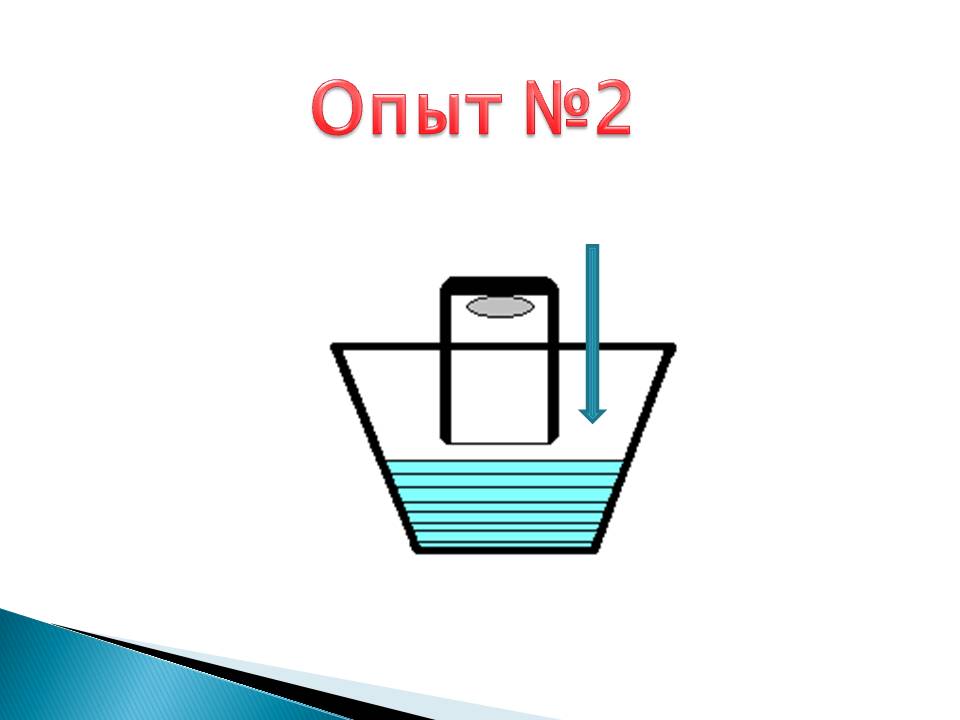 Возьмите стакан, положите в него ватный «диск». Теперь, крепко придерживая стакан за дно, опускаем его горлышком вниз в таз с водой. Ребята, вода входит в стакан? (Слайд 3)