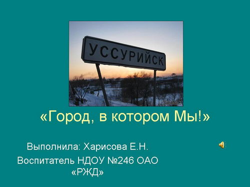 Ребята, а сейчас мы отправимся в небольшое увлекательное путешествие по нашему родному Уссурийску (Презентация об Уссурийске )