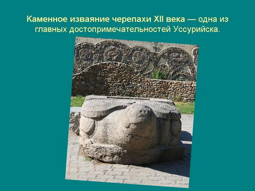 Уссурийск имеет статус исторического города России. Достопримечательность города - каменное изваяние черепахи, олицетворяющее долговечность. (Фотографии каменной черепахи) . Подобные черепахи устанавливались на могилах лиц императорской фамилии чжурчженей. Археологи продолжают находить на раскопках древних городищ предметы быта ранних государств на территории нынешнего Уссурийска.