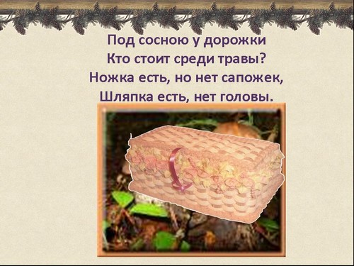 Отгадывание загадок, поиск грибов на слайде (слайд 8)
