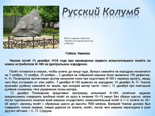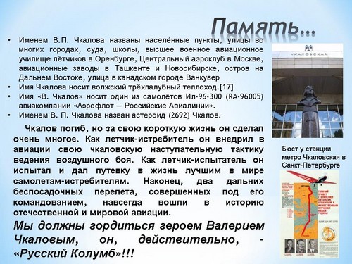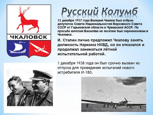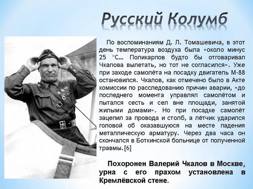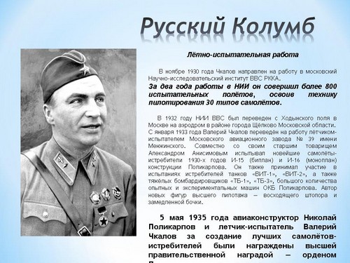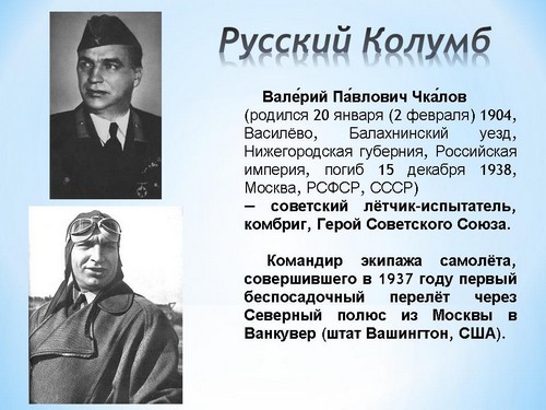 Мы должны гордиться героем Валерием Чкаловым, он, действительно, – “Русский Колумб”!!!