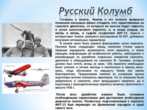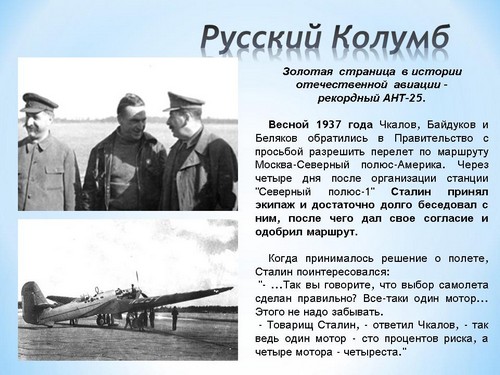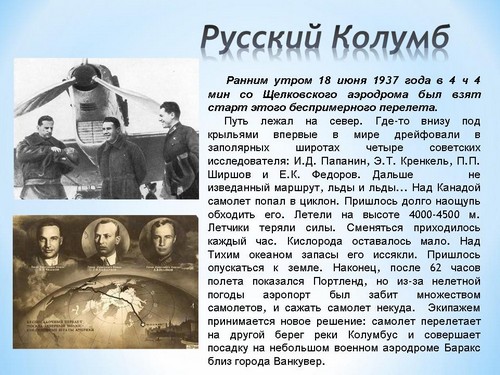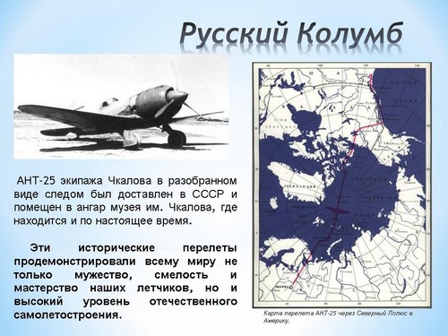 Эти исторические перелеты продемонстрировали всему миру не только мужество, смелость и мастерство наших летчиков, но и высокий уровень отечественного самолетостроения.