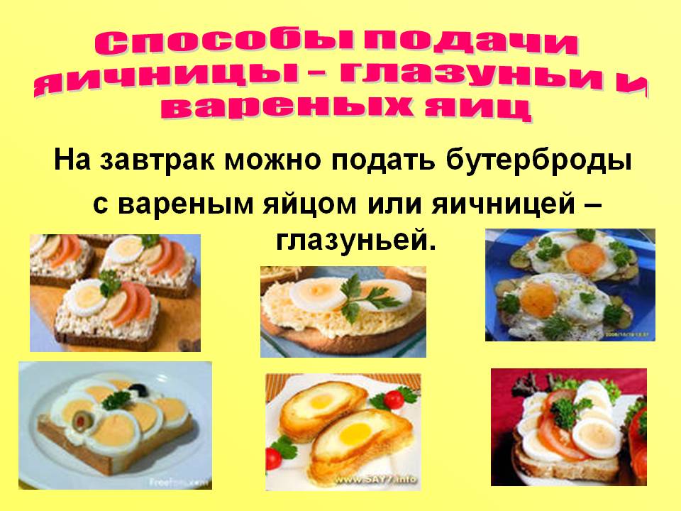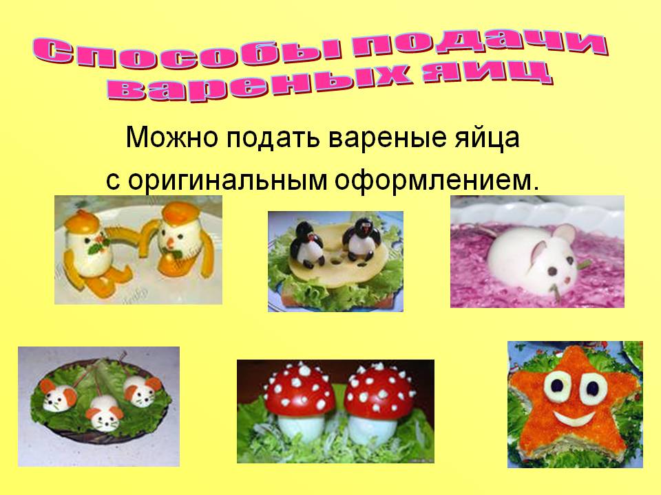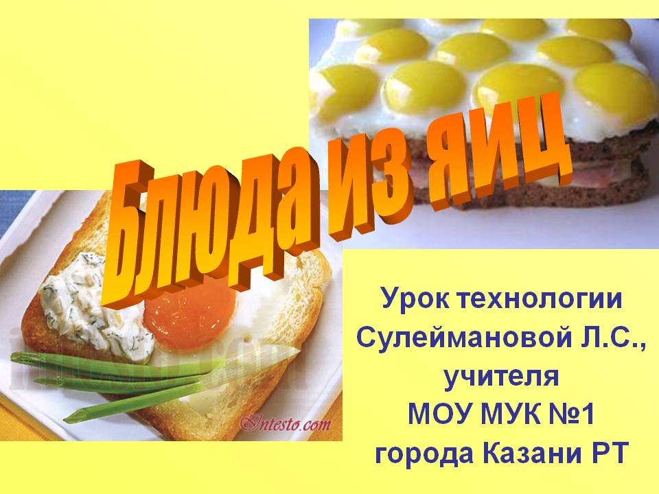 "Блюда из яиц". 5-й класс Сулейманова Любовь Семёновна, учитель технологии Разделы: Технология Класс: 5 Презентация к уроку Назад Вперёд Загрузить презентацию (1 МБ) 5.02.2013