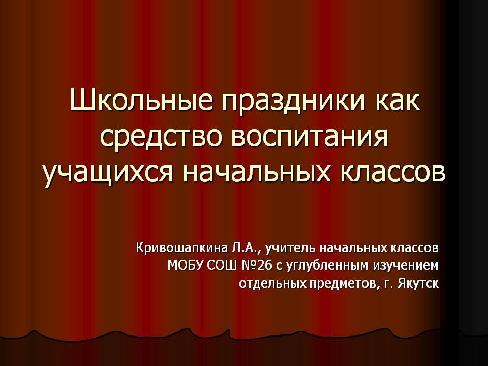 Подготовка праздника – это большое и важное дело, коллективное и непременно творческое, требующее труда и фантазии, выдумки и изобретательности детей и взрослых, – тогда он интересен всем. Принимая участие в подготовке и проведении праздников, дети и взрослые реализуют свои скрытые возможности, набираются энергии для будущего. Праздники повышают общий тонус школьной жизни. При этом первая задача учителя начальных классов заключается в том, чтобы сформировать детский коллектив, сплотить родителей, то есть выстроить систему отношений: