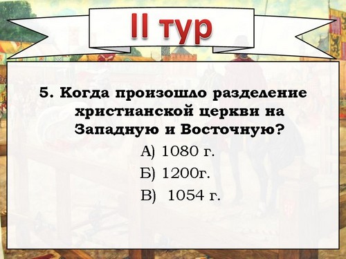 5. Когда произошло разделение христианской церкви на Западную и Восточную?