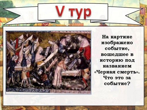 (Слайд 32) На картине изображено событие, вошедшее в историю под названием “Черная смерть”. Что это за событие? |