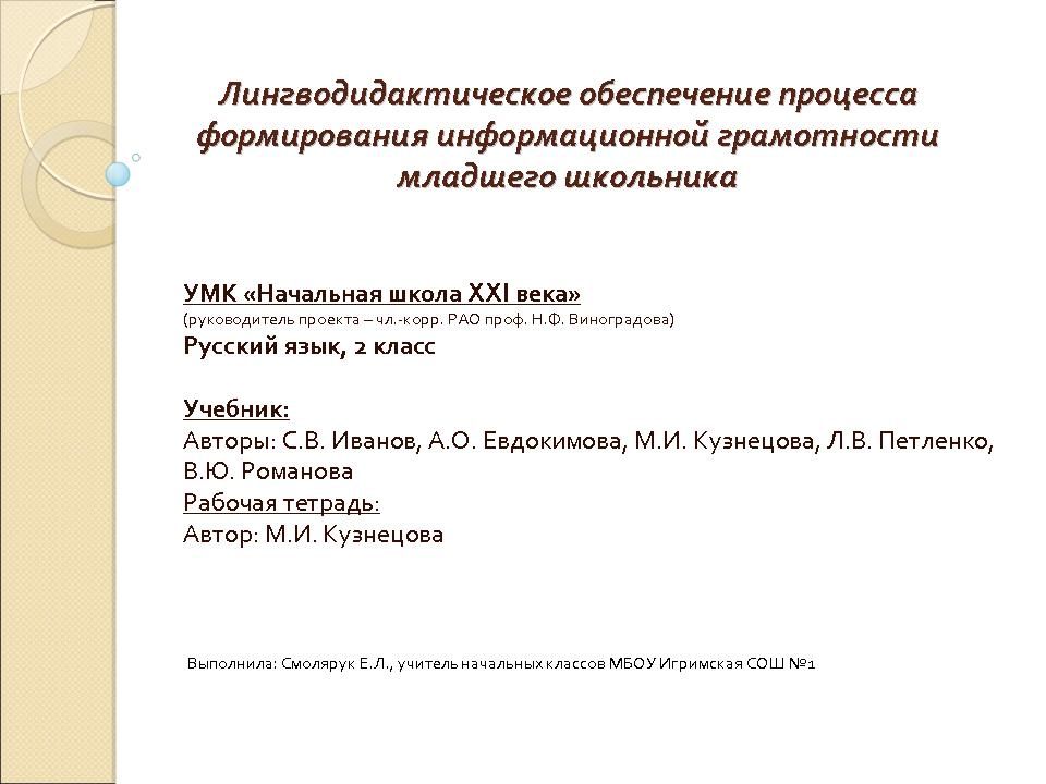 УМК “Начальная школа XXI века” (руководитель проекта – чл.-корр. РАО проф. Н.Ф. Виноградова)