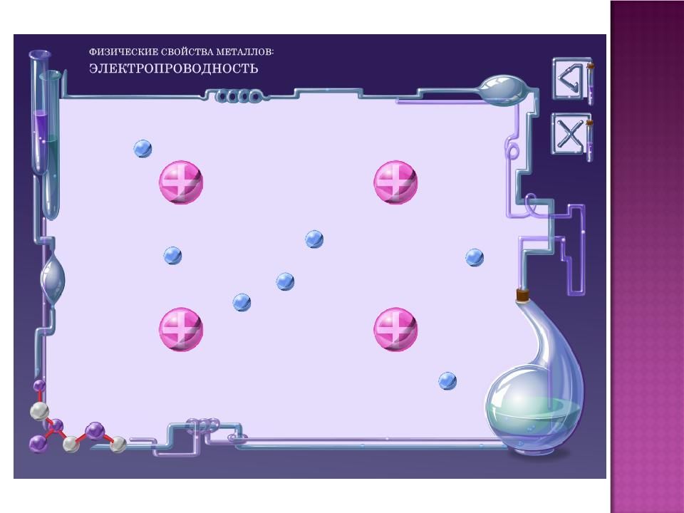 | Просмотр флеш-анимации | Физические свойства металлов: электропроводность. http://school-collection.edu.ru/catalog/res/0ab63252-4185-11db-b0de-0800200c9a66/view/ | ||||||||||||||||