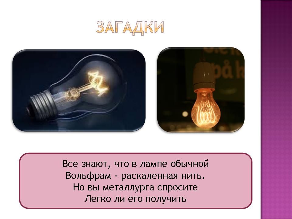 | Все знают, что в лампе обычной Вольфрам - раскаленная нить. Но вы металлурга спросите Легко ли его получить. (теплопроводность) |