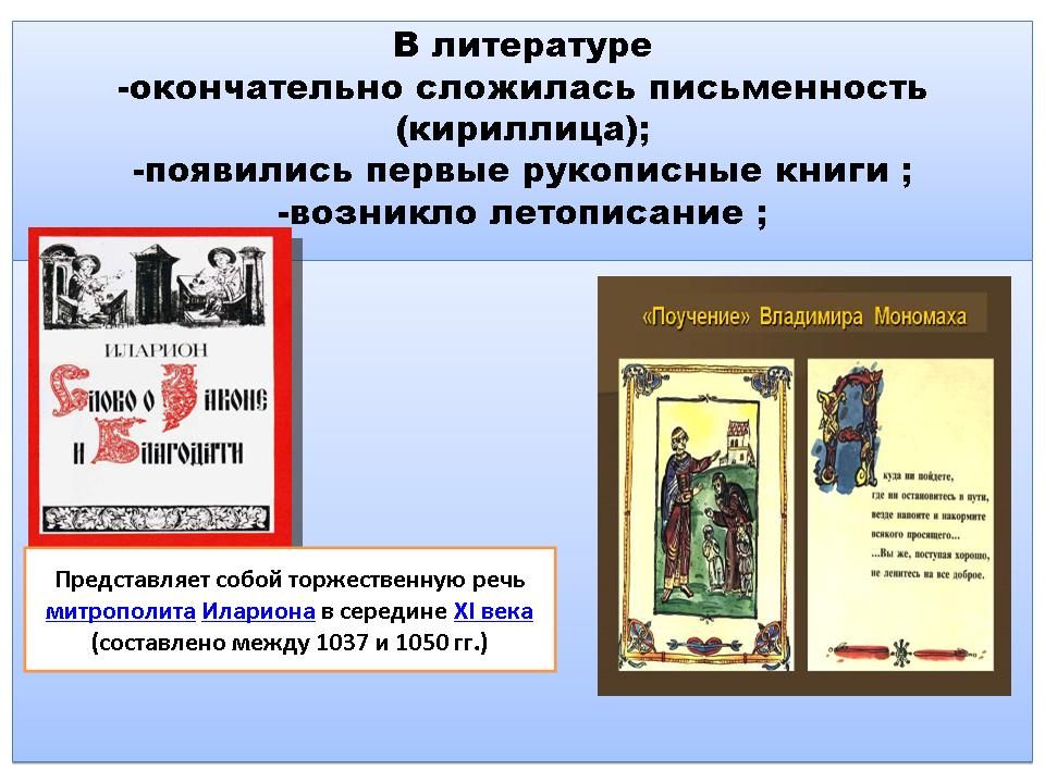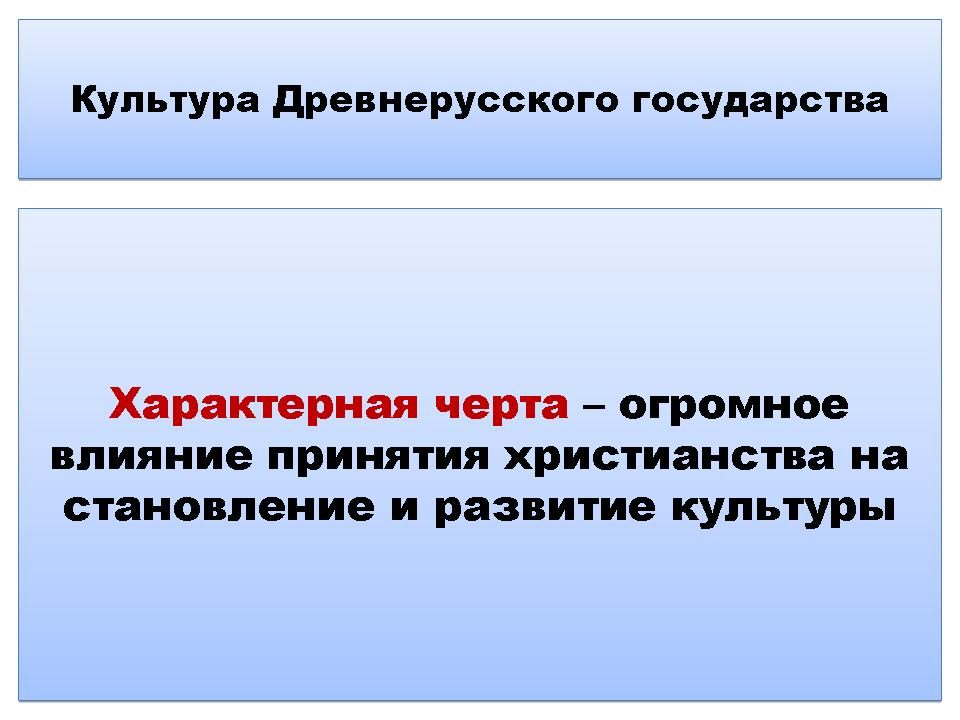 - Характерная черта – огромное влияние принятия христианства на становление и развитие культуры