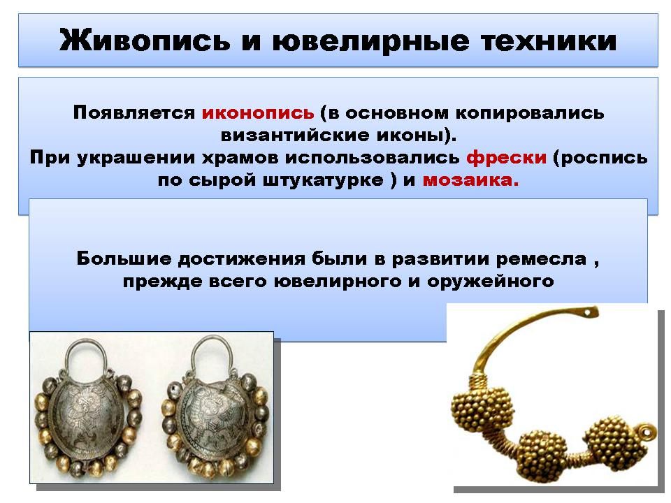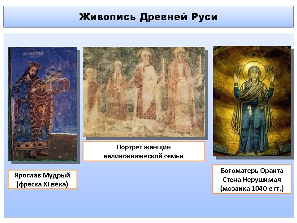При украшении храмов использовались фрески (роспись по сырой штукатурке ) и мозаика.