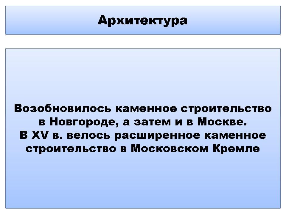 Возобновилось каменное строительство в Новгороде, а затем и в Москве.