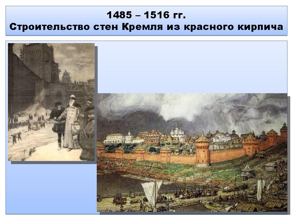 В XV в. велось расширенное каменное строительство в Московском Кремле