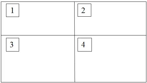 - На сколько частей мы разделим наш альбомный лист? (4)