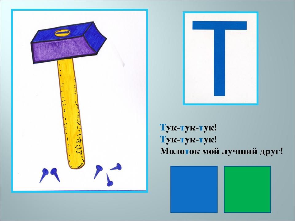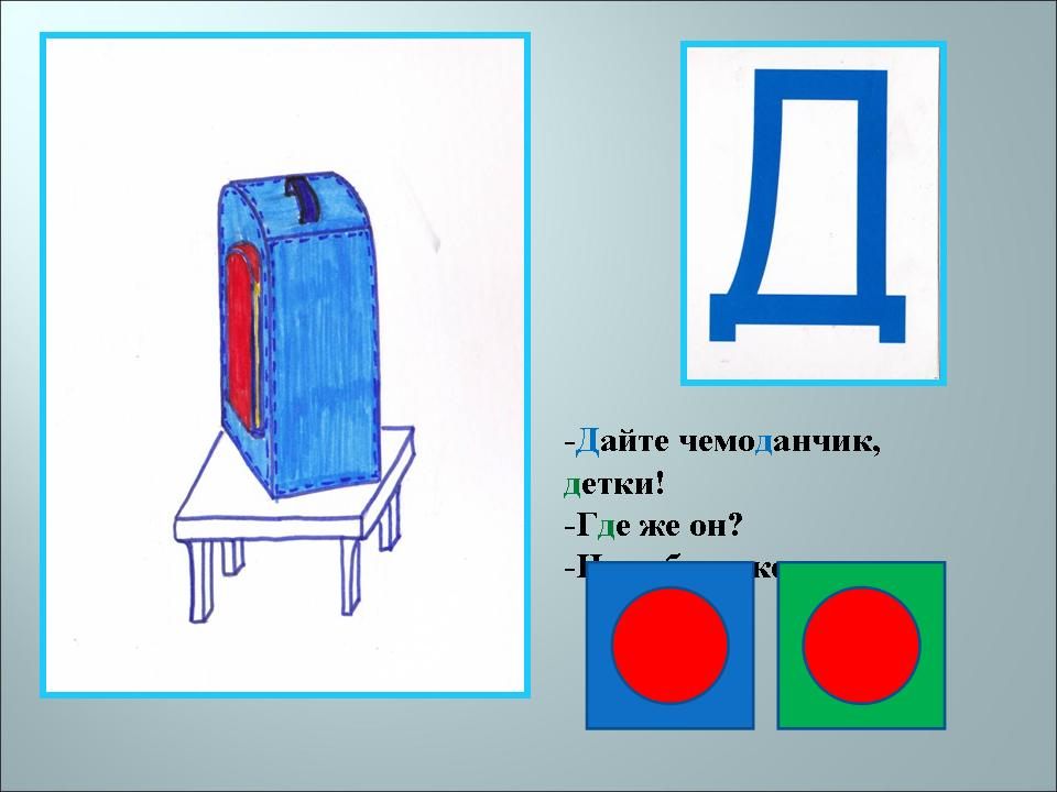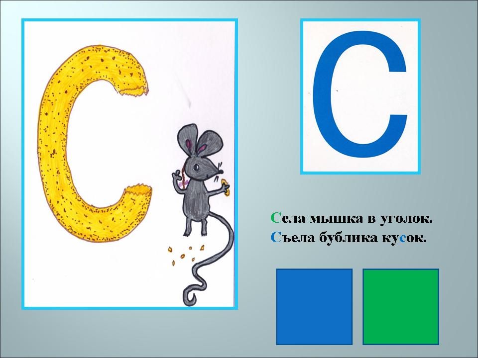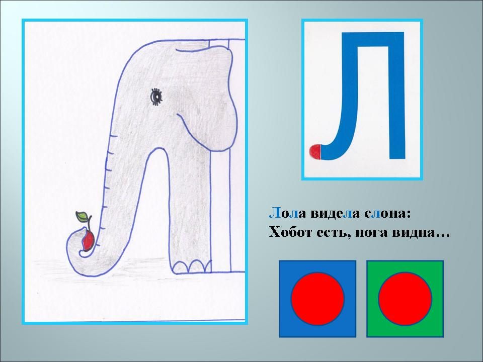 Какими сигналами мы обозначим звуки? (гласный – красный квадрат – это чистый голосок; согласный твёрдый – синий квадрат; согласный мягкий – зелёный квадрат; звонкость обозначается маленьким красным кружком в середине квадрата).