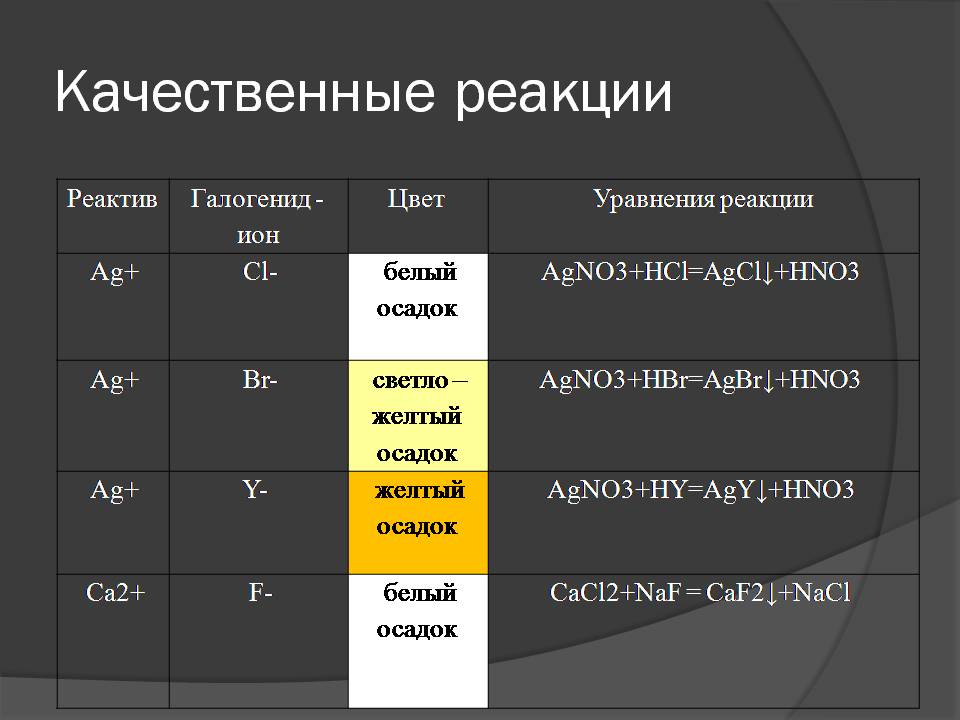 - В ходе групповой работы уметь устанавливать причинно-следственные связи между результатом реакции на галогенид-ионы и реагентами;